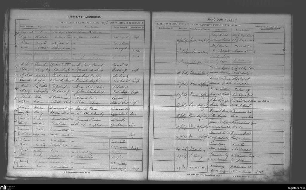 St. Finbarr's, Cork city; County of Cork; Diocese of Cork and Ross. Marriages, July 1879