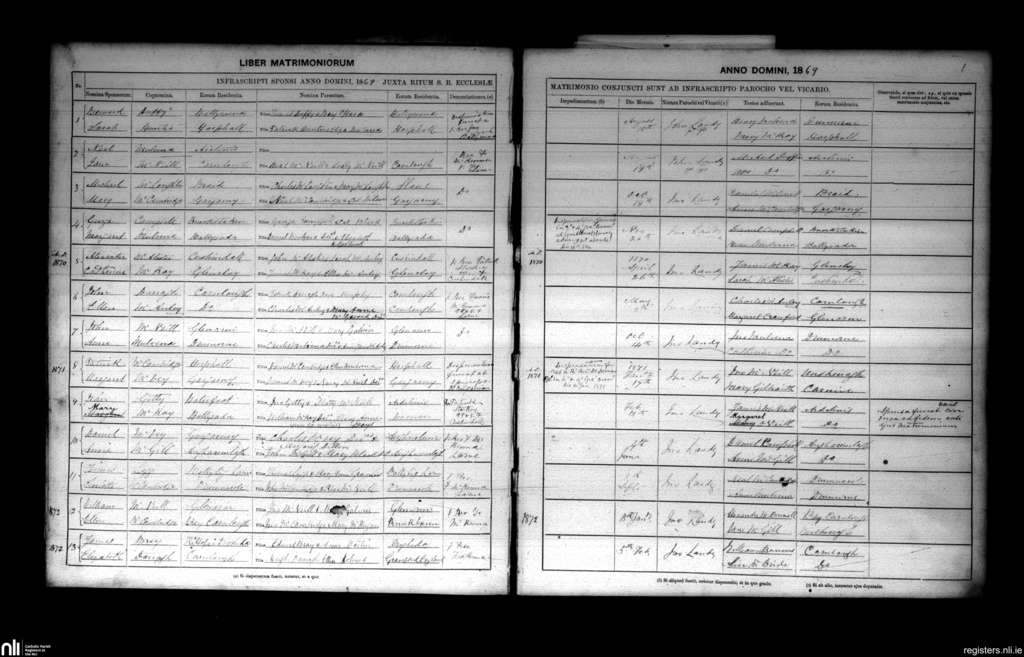 Carnlough; County of Antrim; Diocese of Down and Connor. Marriages, Aug. 1869 to Feb. 1872