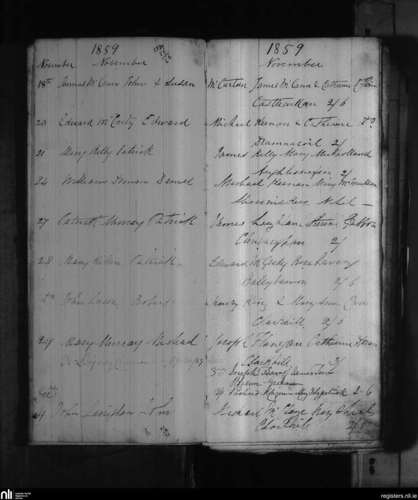 Castlewellan; County of Down; Diocese of Down and Connor. Baptisms, Nov. 1859 to Dec. 1859