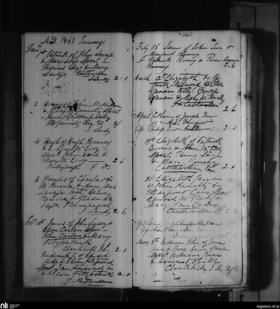 Castlewellan; County of Down; Diocese of Down and Connor. Baptisms, Jan. 1861 to May 1861