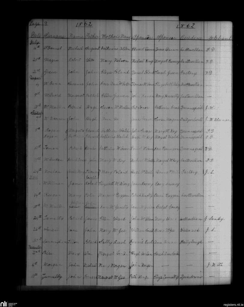 Castlewellan; County of Down; Diocese of Down and Connor. Baptisms, July 1862 to Dec. 1862