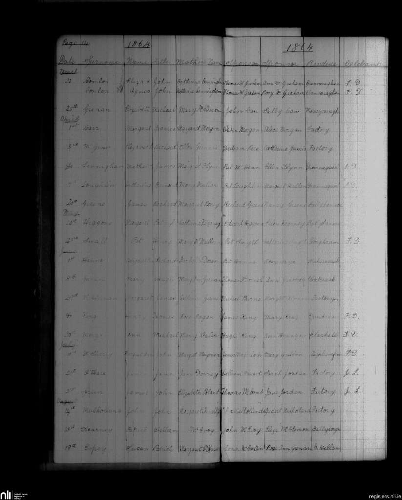 Castlewellan; County of Down; Diocese of Down and Connor. Baptisms, Mar. 1864 to Aug. 1864