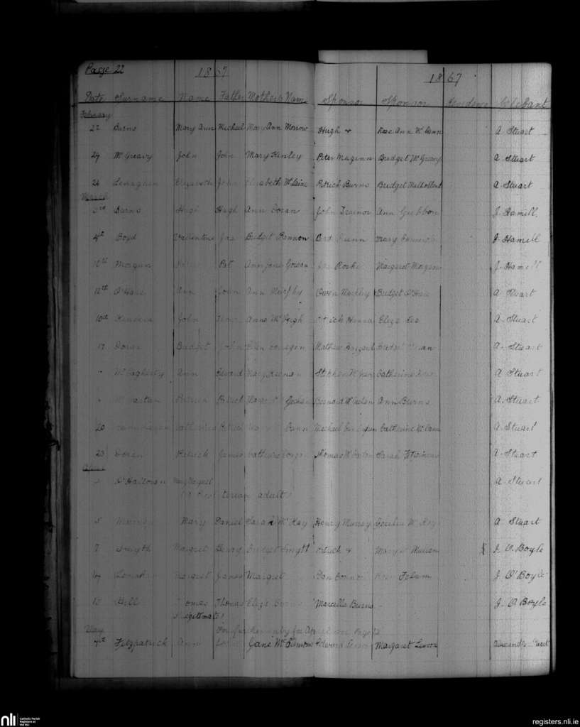 Castlewellan; County of Down; Diocese of Down and Connor. Baptisms, Feb. 1867 to May 1867