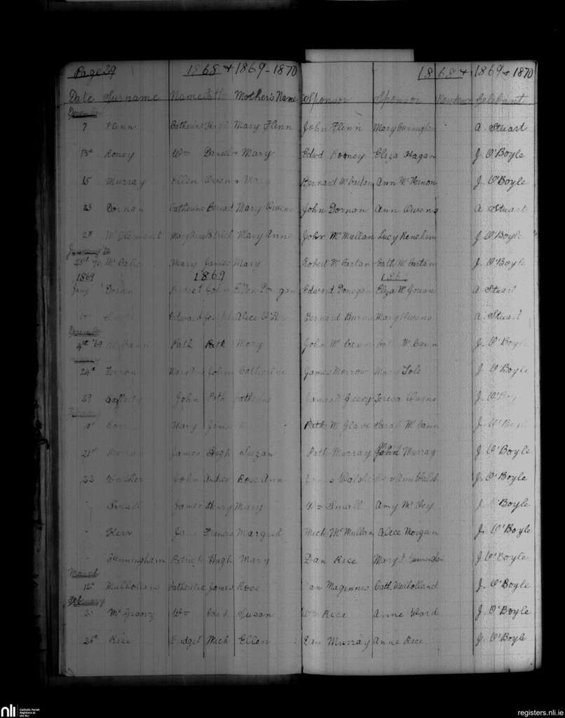 Castlewellan; County of Down; Diocese of Down and Connor. Baptisms, Dec. 1868 to Mar. 1869