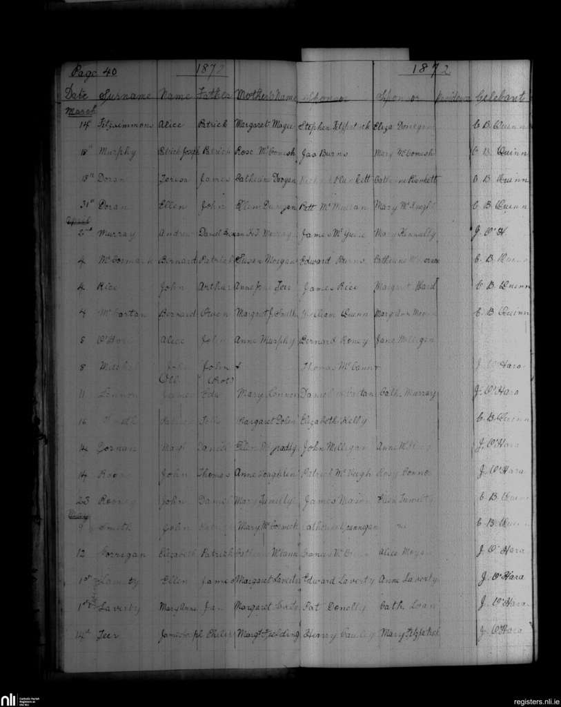 Castlewellan; County of Down; Diocese of Down and Connor. Baptisms, Mar. 1872 to May 1872