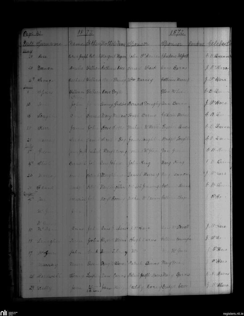 Castlewellan; County of Down; Diocese of Down and Connor. Baptisms, May 1872 to Aug. 1872