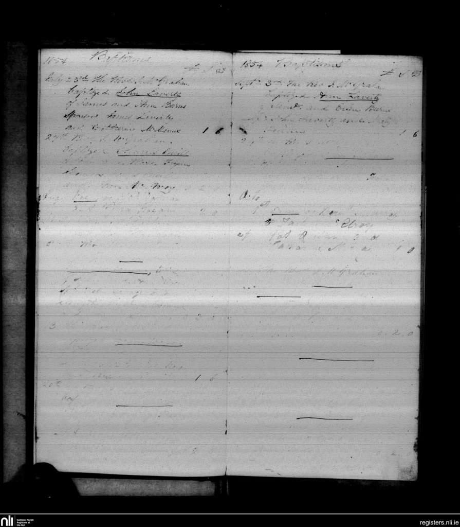 Drumaroad; County of Down; Diocese of Down and Connor. Baptisms, July 1854 to Oct. 1854