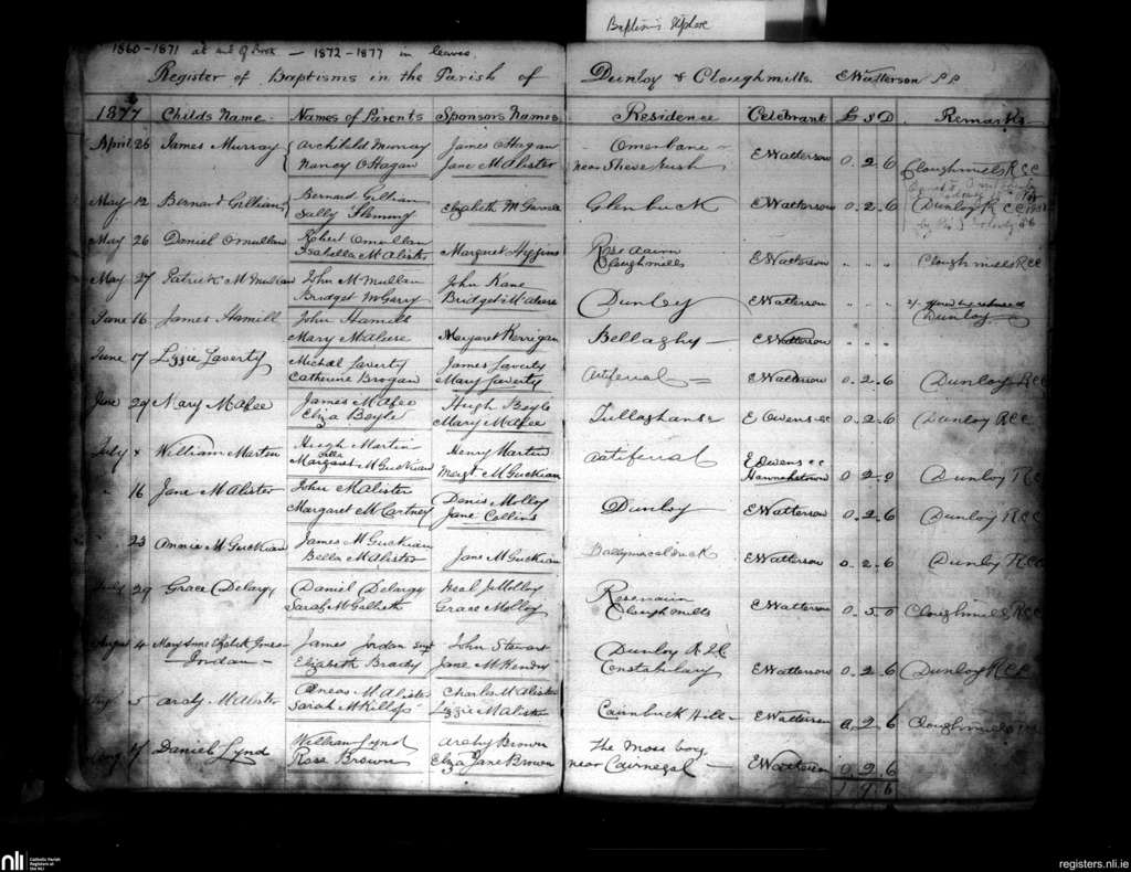 Dunloy; County of Antrim; Diocese of Down and Connor. Baptisms, Apr. 1877 to Aug. 1877