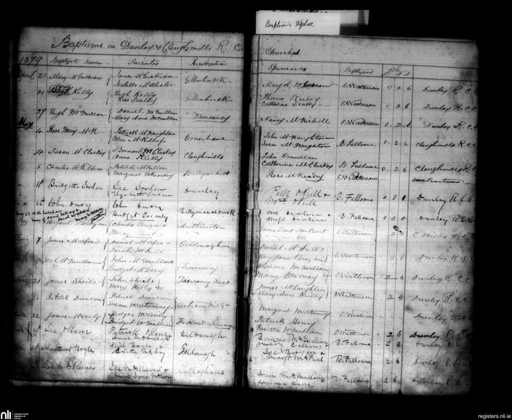Dunloy; County of Antrim; Diocese of Down and Connor. Baptisms, Apr. 1879 to June 1879
