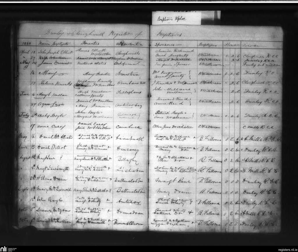 Dunloy; County of Antrim; Diocese of Down and Connor. Baptisms, Apr. 1880 to Oct. 1880