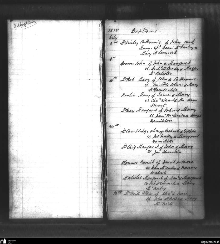 Culfeightrin; County of Antrim; Diocese of Down and Connor. Baptisms, July 1825