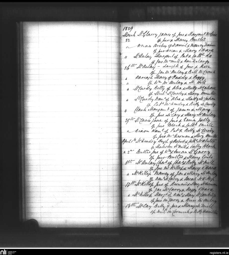 Culfeightrin; County of Antrim; Diocese of Down and Connor. Baptisms, Mar. 1829 to Apr. 1829