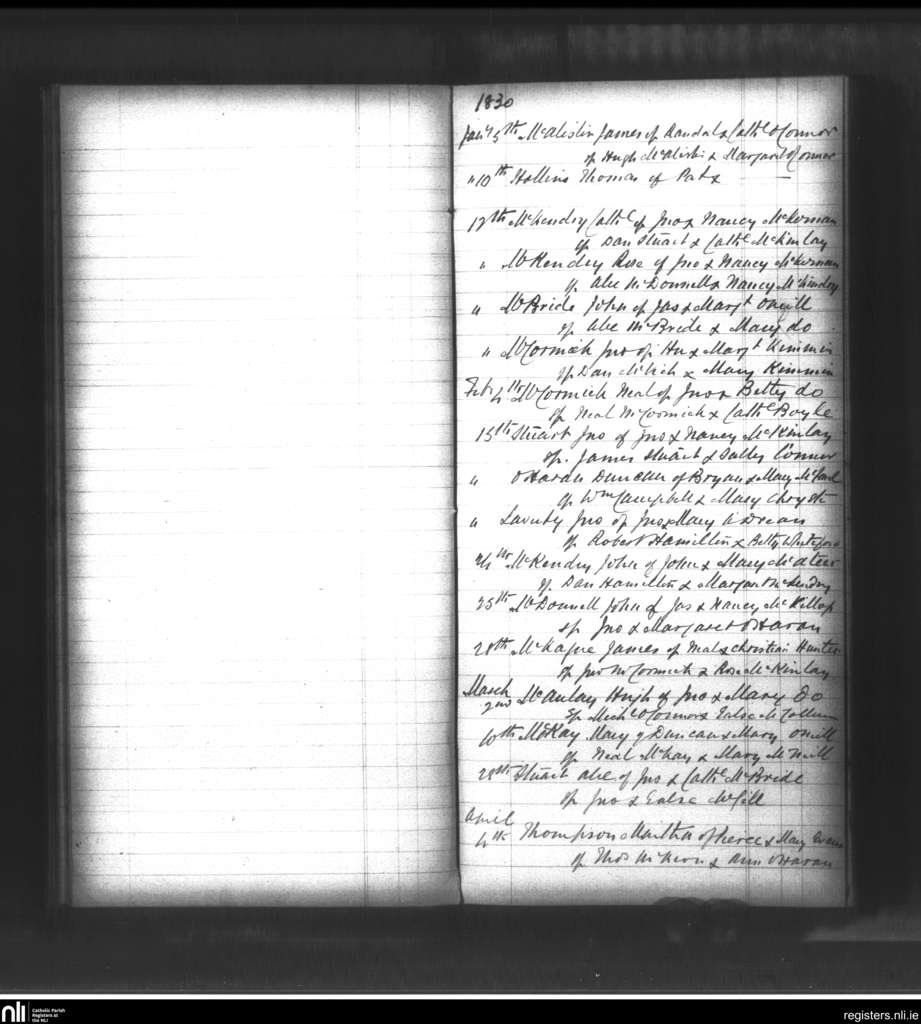 Culfeightrin; County of Antrim; Diocese of Down and Connor. Baptisms, Jan. 1830 to Apr. 1830