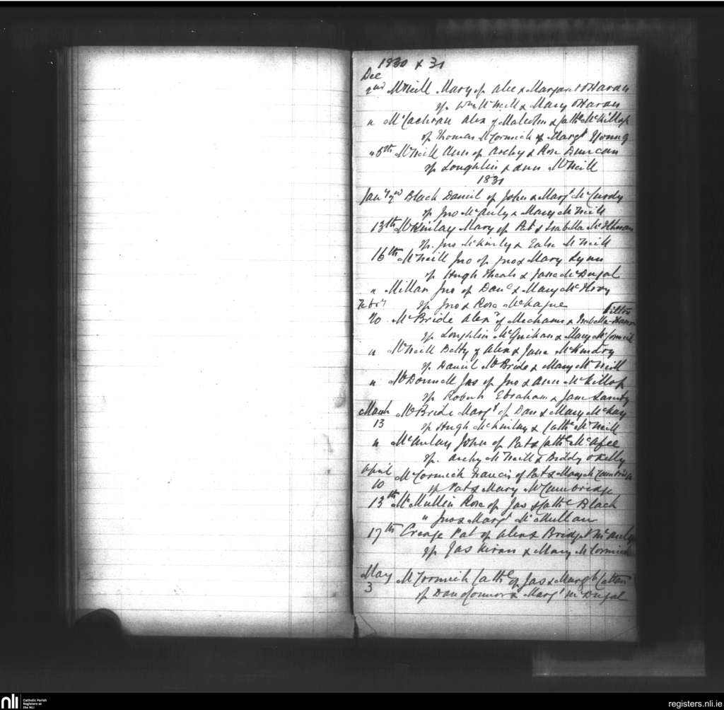 Culfeightrin; County of Antrim; Diocese of Down and Connor. Baptisms, Dec. 1830 to May 1831