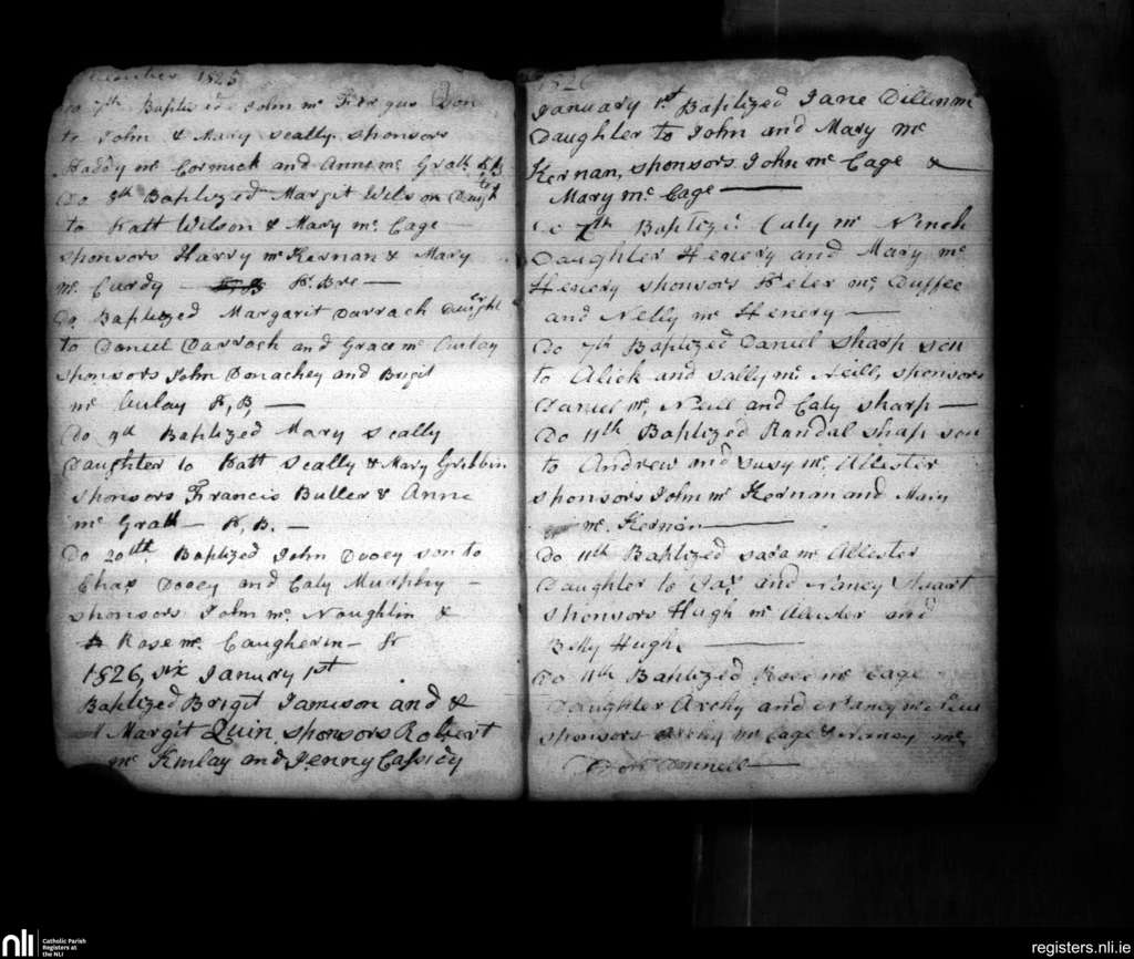 Culfeightrin; County of Antrim; Diocese of Down and Connor. Baptisms, Dec. 1825 to Jan. 1826