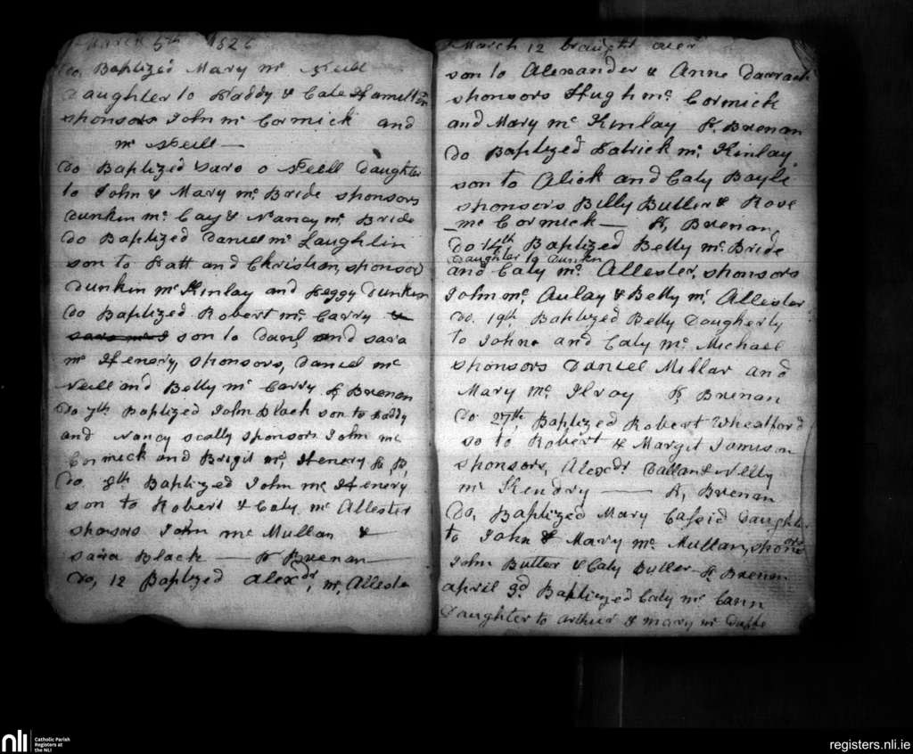 Culfeightrin; County of Antrim; Diocese of Down and Connor. Baptisms, Mar. 1826 to Apr. 1826