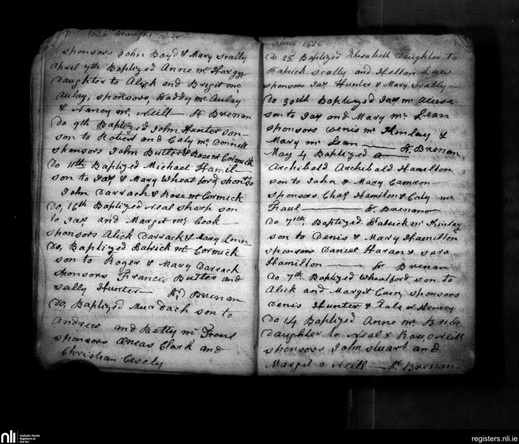Culfeightrin; County of Antrim; Diocese of Down and Connor. Baptisms, Apr. 1826 to May 1826