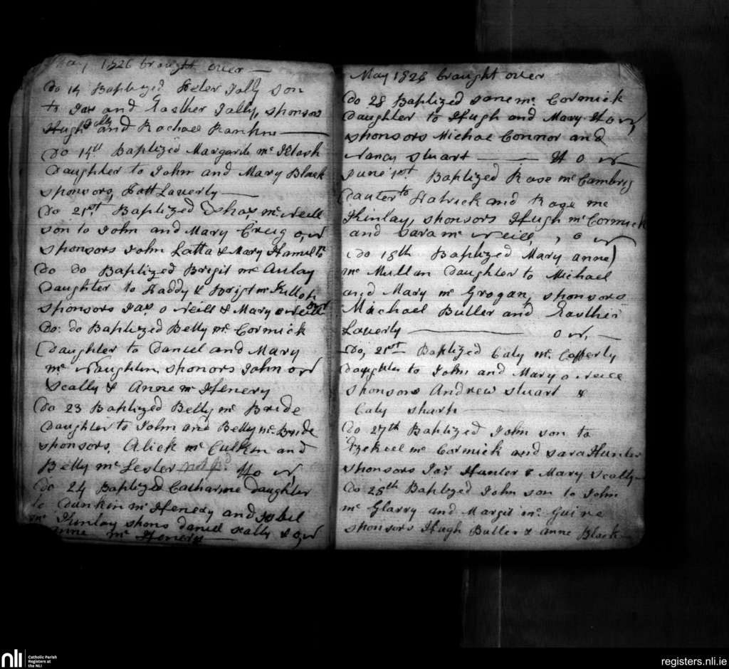 Culfeightrin; County of Antrim; Diocese of Down and Connor. Baptisms, May 1826 to June 1826