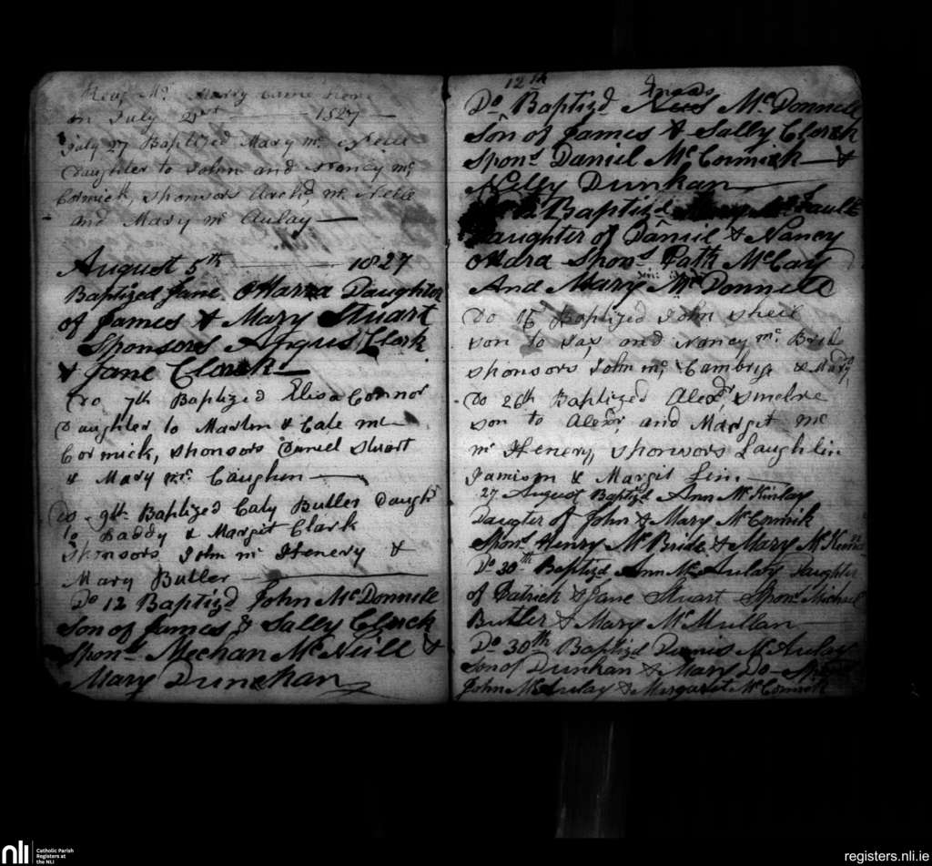Culfeightrin; County of Antrim; Diocese of Down and Connor. Baptisms, July 1827 to Aug. 1827