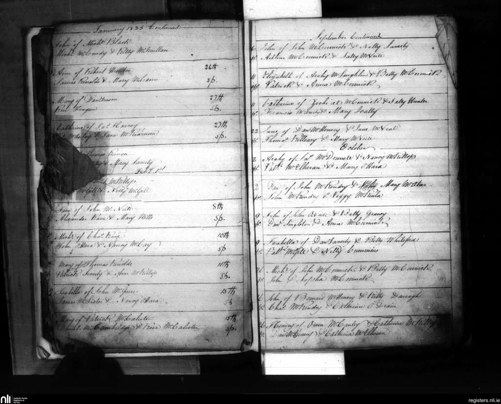 Culfeightrin; County of Antrim; Diocese of Down and Connor. Baptisms, Jan. 1835 to Oct. 1835