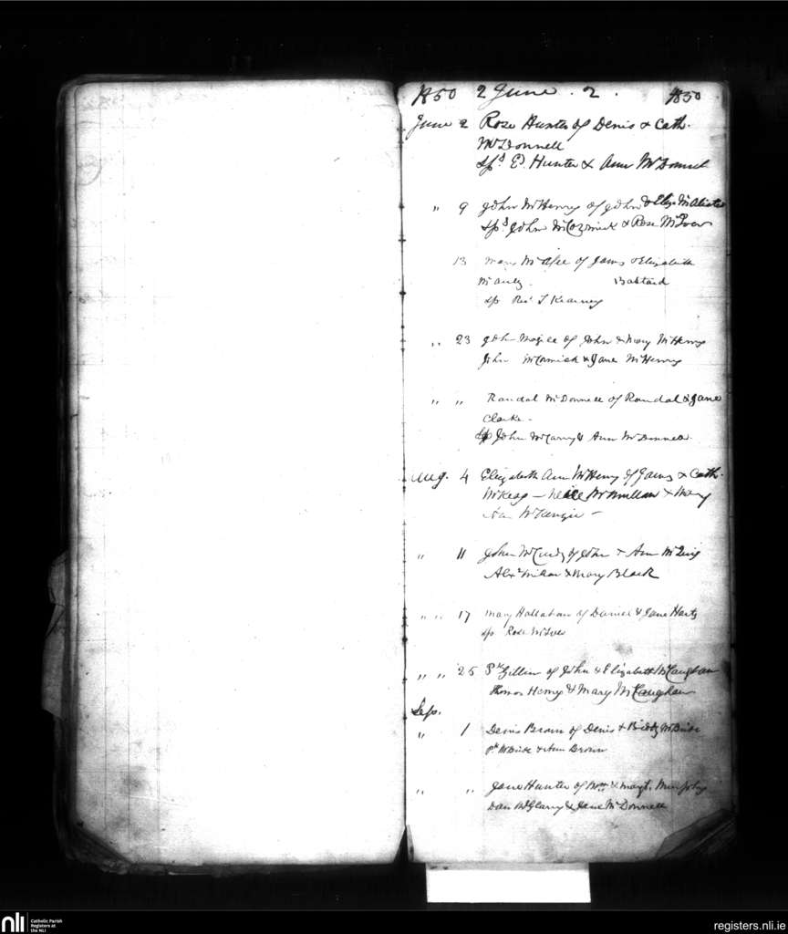Culfeightrin; County of Antrim; Diocese of Down and Connor. Baptisms, June 1850 to Sep. 1850