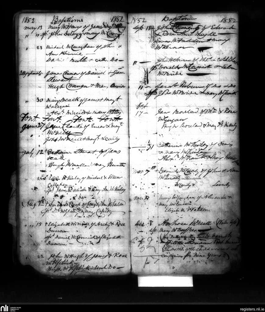 Culfeightrin; County of Antrim; Diocese of Down and Connor. Baptisms, May 1852 to Dec. 1852