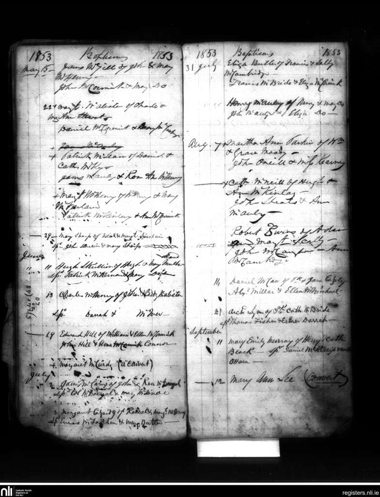 Culfeightrin; County of Antrim; Diocese of Down and Connor. Baptisms, June 1853 to Sep. 1853