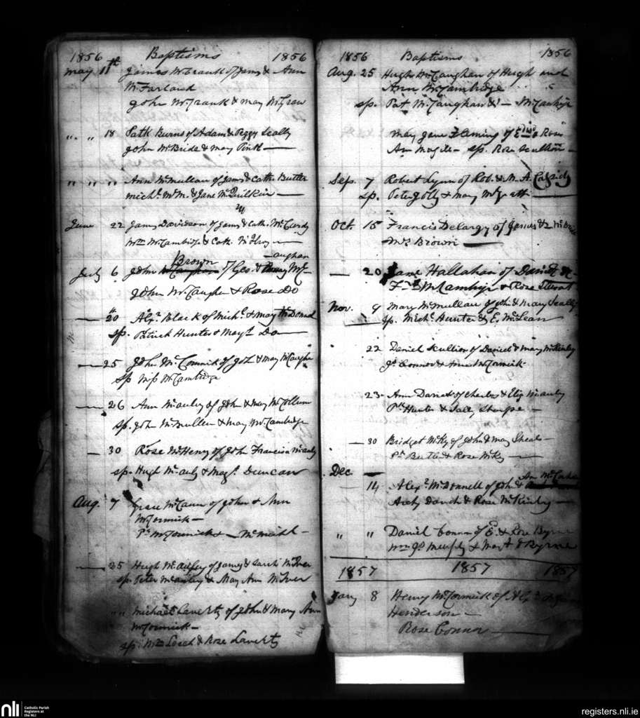Culfeightrin; County of Antrim; Diocese of Down and Connor. Baptisms, May 1856 to Jan. 1857
