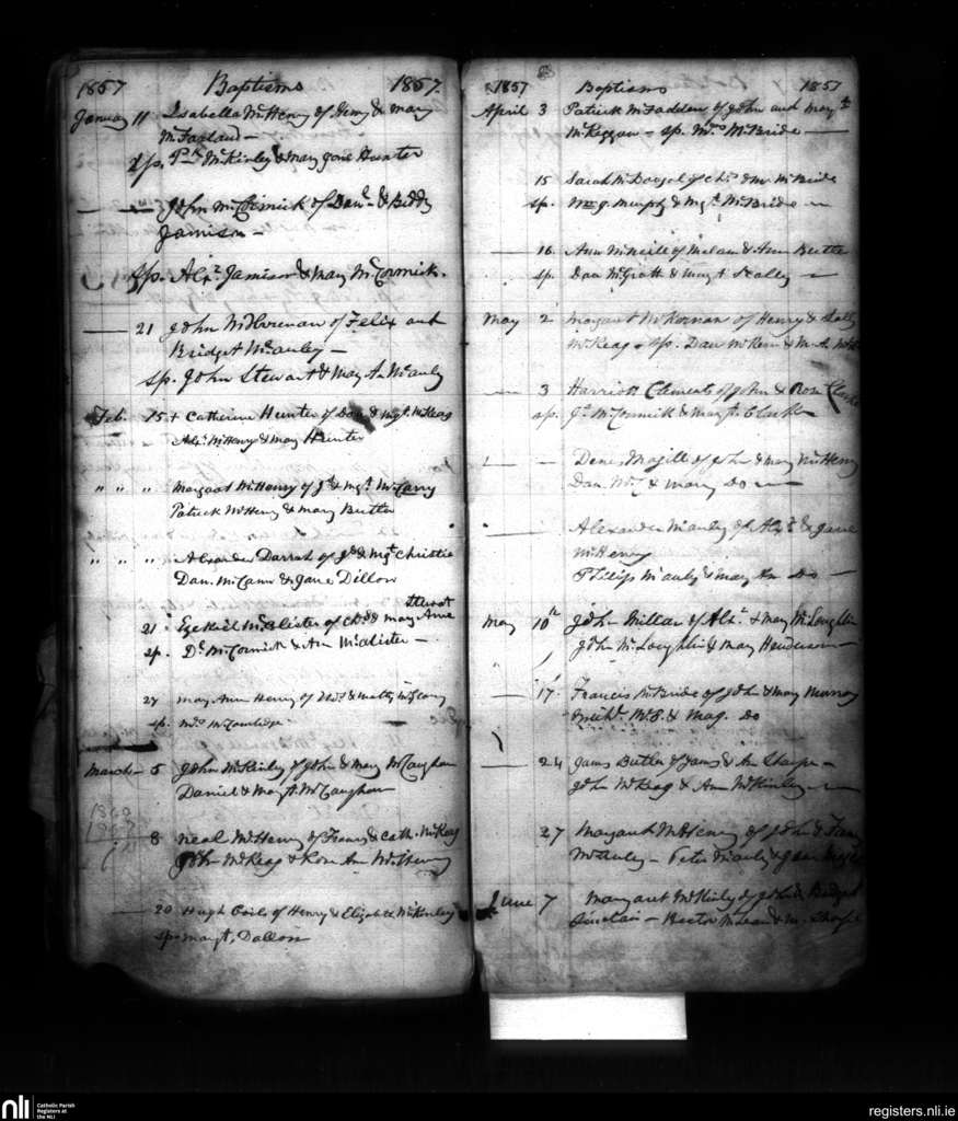 Culfeightrin; County of Antrim; Diocese of Down and Connor. Baptisms, Jan. 1857 to June 1857