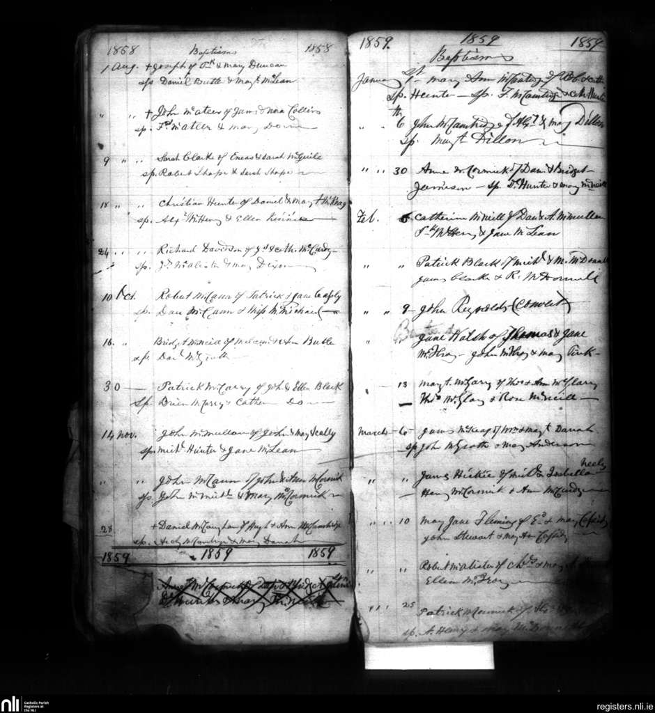 Culfeightrin; County of Antrim; Diocese of Down and Connor. Baptisms, Aug. 1858 to Mar. 1859