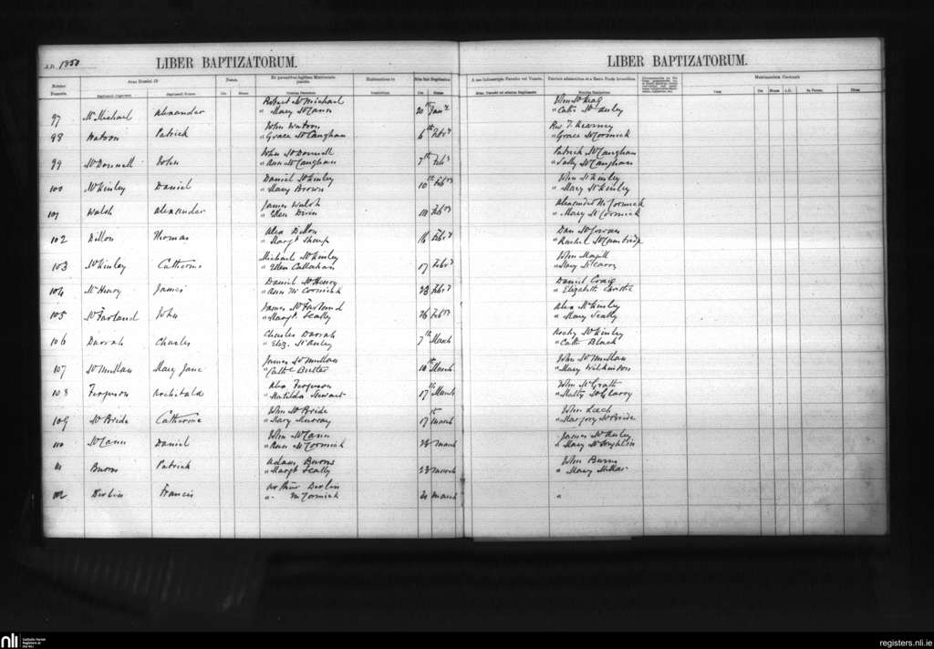 Culfeightrin; County of Antrim; Diocese of Down and Connor. Baptisms, Jan. 1850 to Mar. 1850