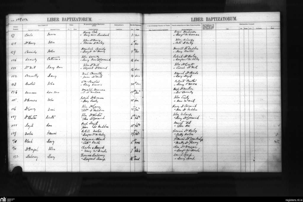 Culfeightrin; County of Antrim; Diocese of Down and Connor. Baptisms, Nov. 1851 to Mar. 1852