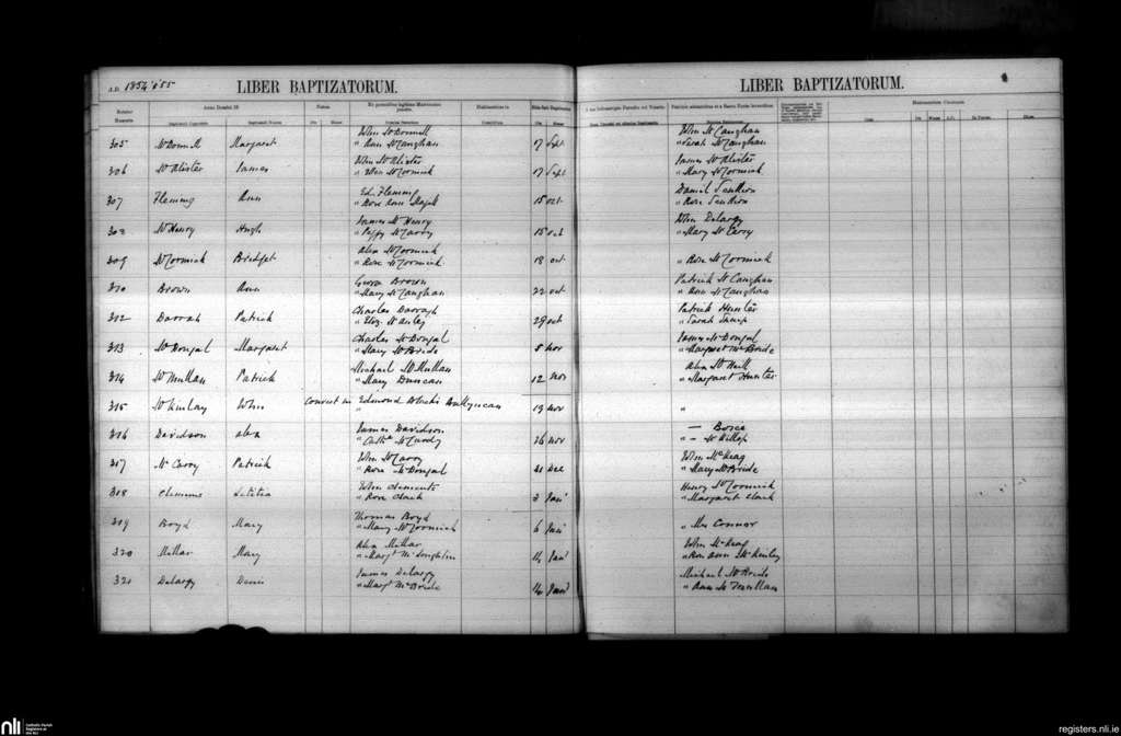 Culfeightrin; County of Antrim; Diocese of Down and Connor. Baptisms, Sep. 1854 to Jan. 1855