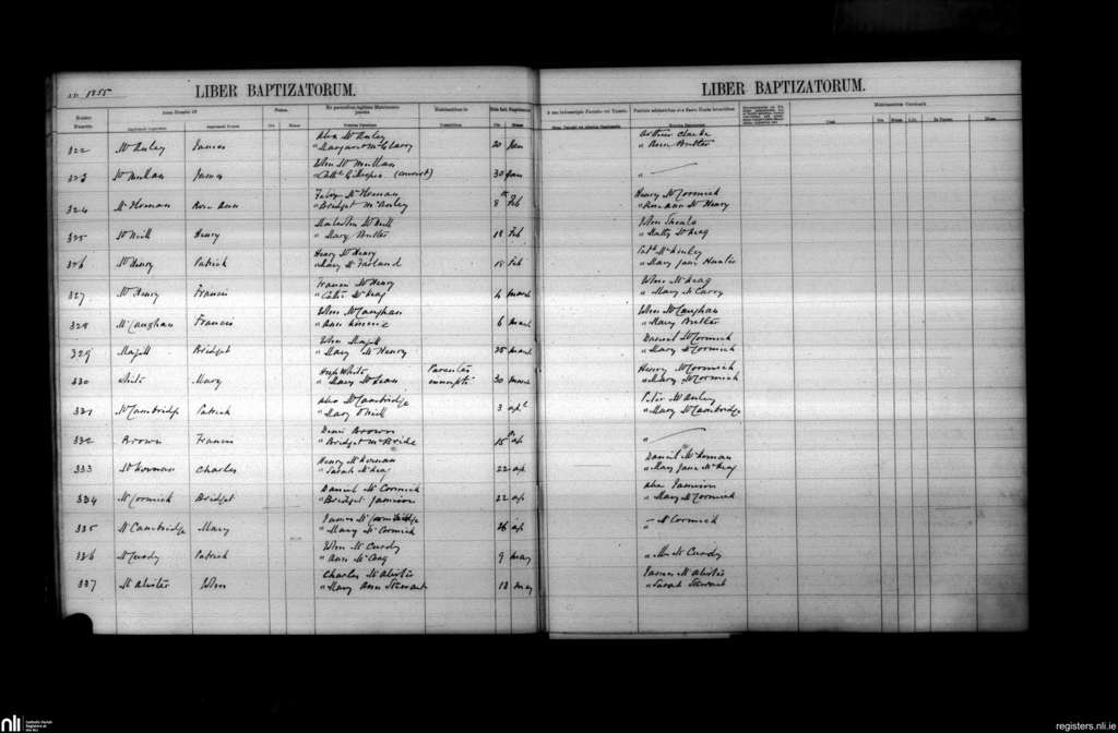 Culfeightrin; County of Antrim; Diocese of Down and Connor. Baptisms, Jan. 1855 to May 1855
