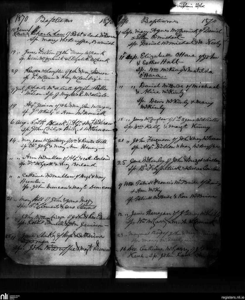 Culfeightrin; County of Antrim; Diocese of Down and Connor. Baptisms, June 1870 to Dec. 1870