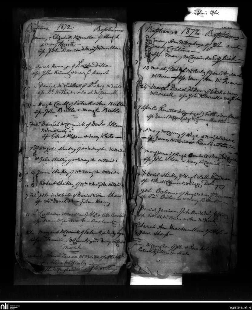 Culfeightrin; County of Antrim; Diocese of Down and Connor. Baptisms, Jan. 1872 to Apr. 1872