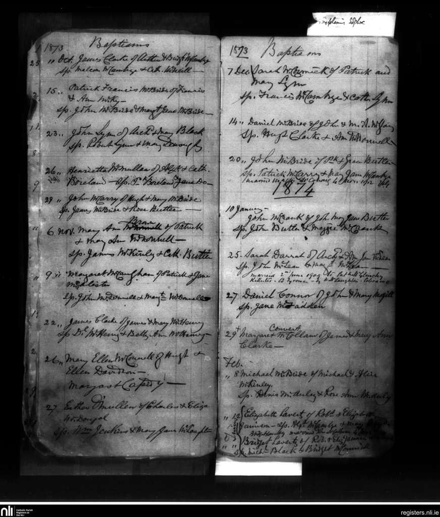 Culfeightrin; County of Antrim; Diocese of Down and Connor. Baptisms, Oct. 1873 to Feb. 1874