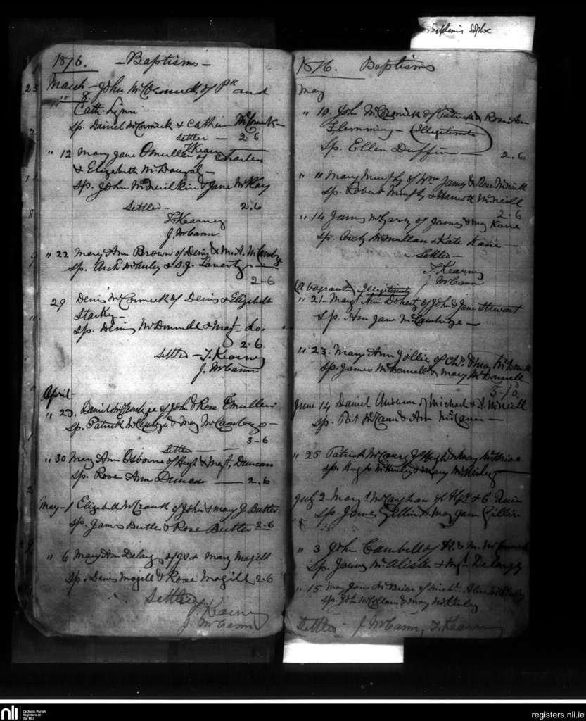 Culfeightrin; County of Antrim; Diocese of Down and Connor. Baptisms, Mar. 1876 to July 1876