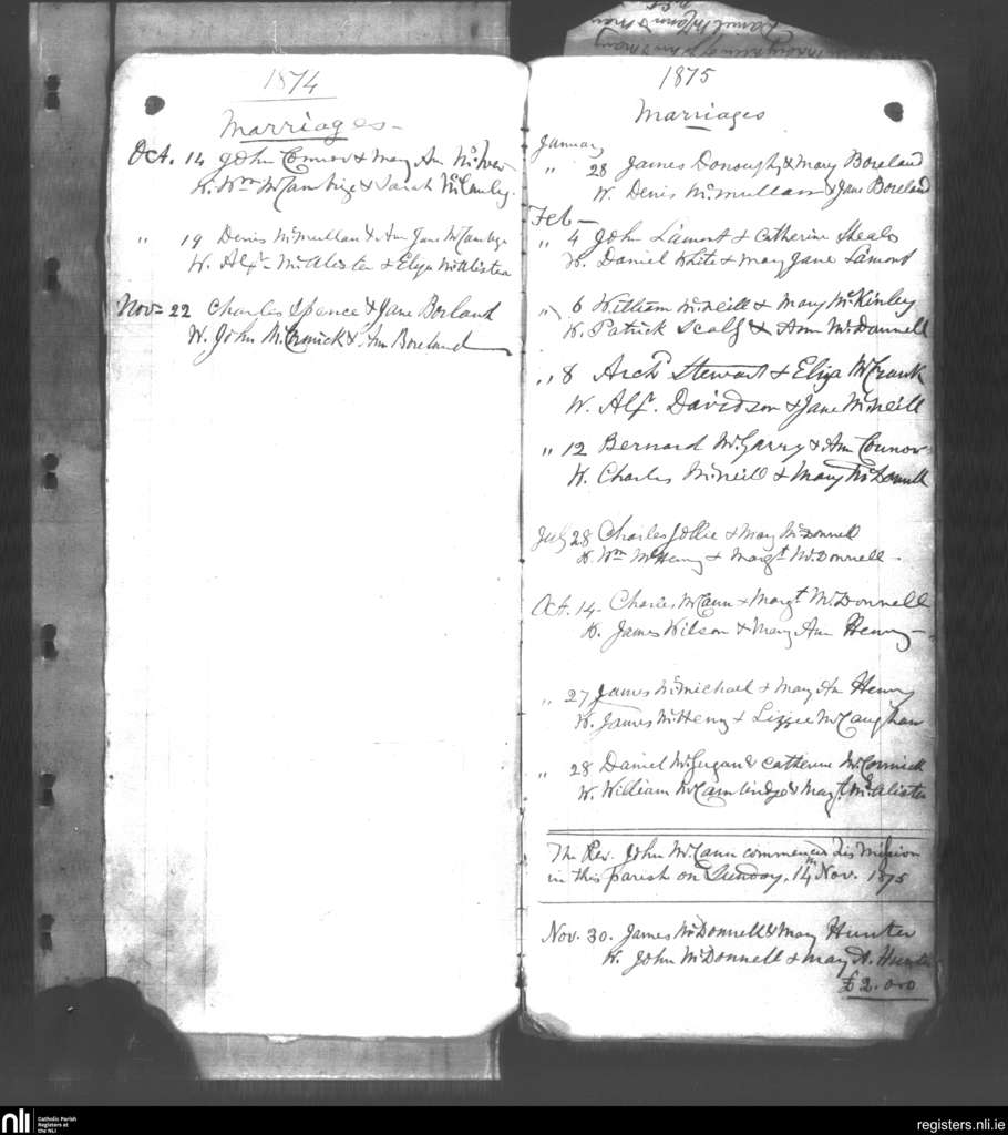 Culfeightrin; County of Antrim; Diocese of Down and Connor. Marriages, Oct. 1874 to Nov. 1875