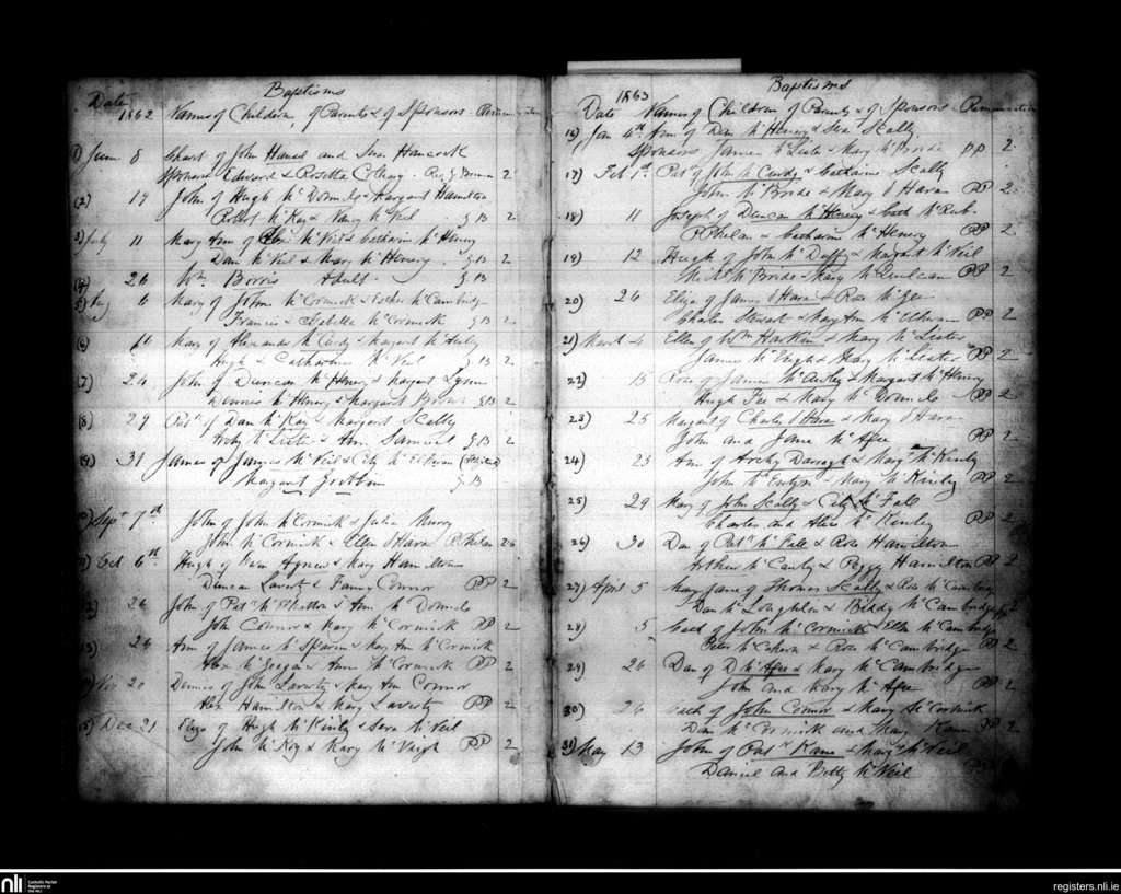 Cushendun; County of Antrim; Diocese of Down and Connor. Baptisms, June 1862 to May 1863