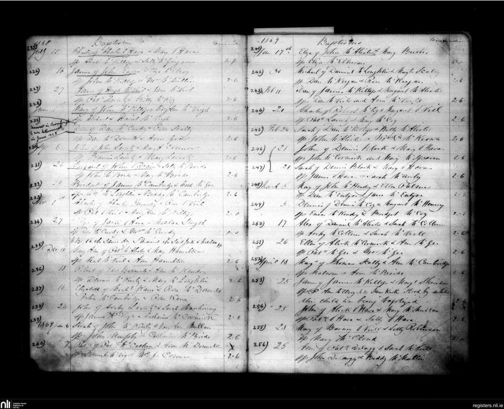 Cushendun; County of Antrim; Diocese of Down and Connor. Baptisms, June 1868 to Apr. 1869