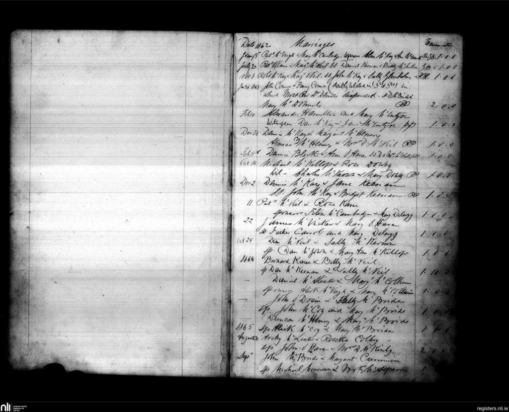 Cushendun; County of Antrim; Diocese of Down and Connor. Marriages, June 1862 to Sep. 1865