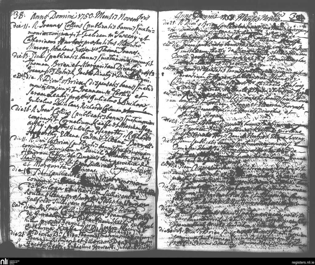 St. Mary's, Cork city; County of Cork; Diocese of Cork and Ross. Marriages, Sep. 1754 to Nov. 1754