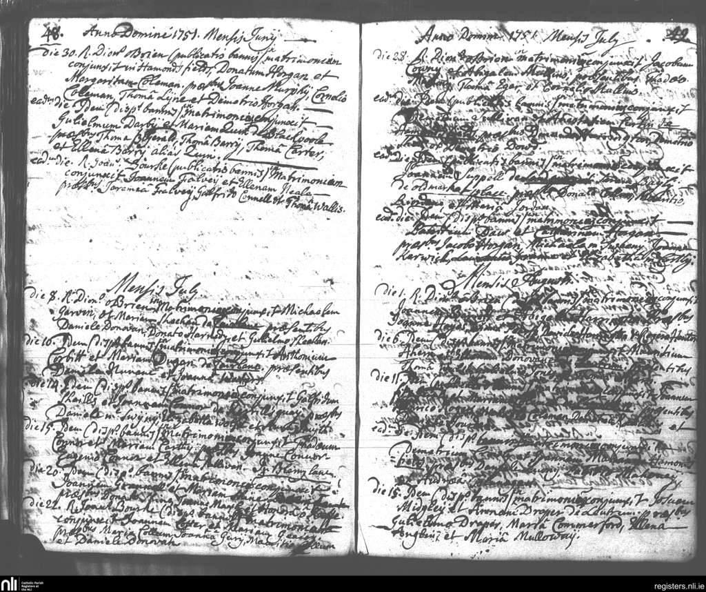 St. Mary's, Cork city; County of Cork; Diocese of Cork and Ross. Marriages, June 1753 to Aug. 1753