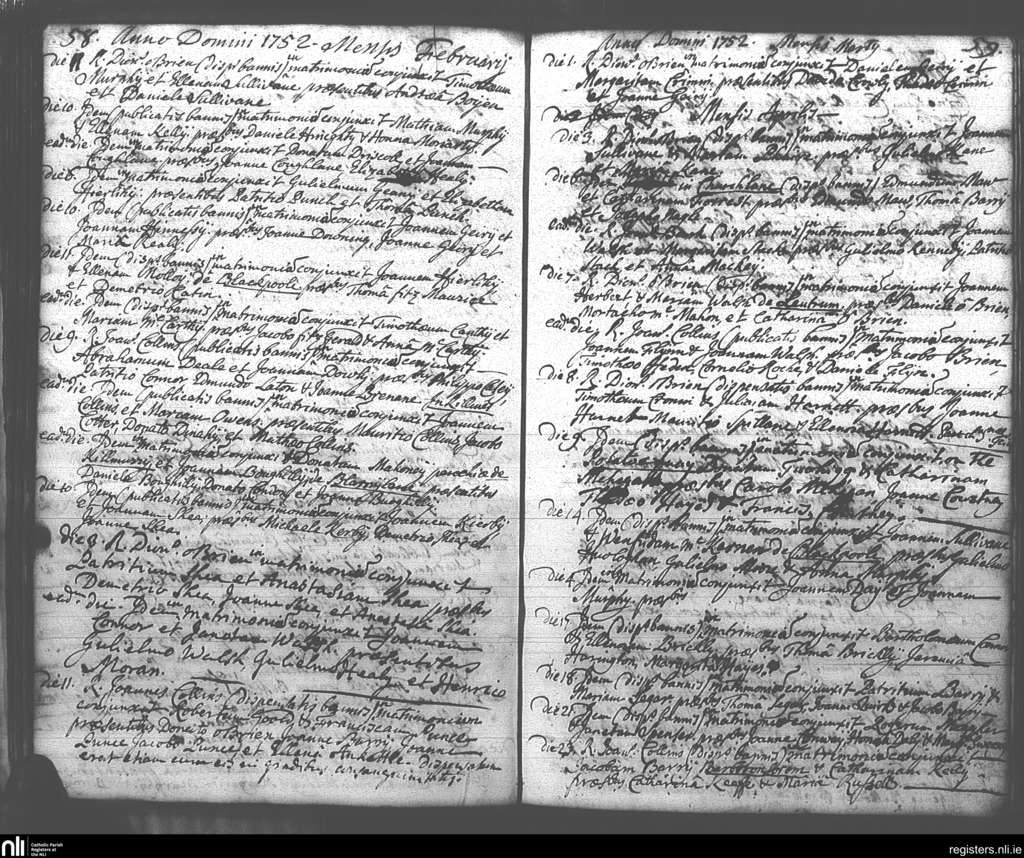 St. Mary's, Cork city; County of Cork; Diocese of Cork and Ross. Marriages, July 1752 to Sep. 1752
