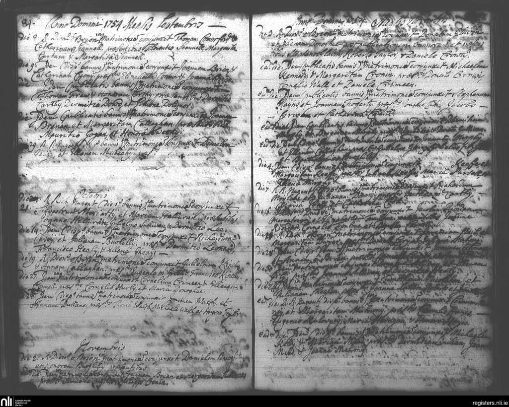 St. Mary's, Cork city; County of Cork; Diocese of Cork and Ross. Marriages, Oct. 1750 to Nov. 1750