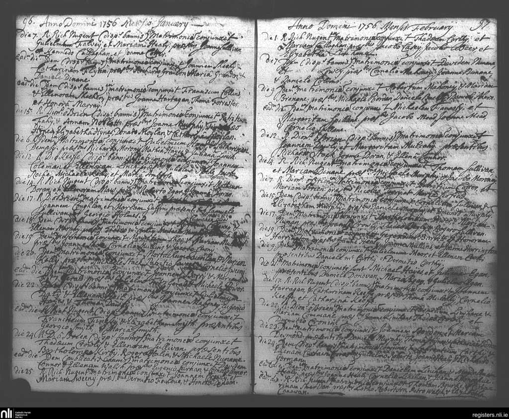 St. Mary's, Cork city; County of Cork; Diocese of Cork and Ross. Marriages, Jan. 1750 to Feb. 1750