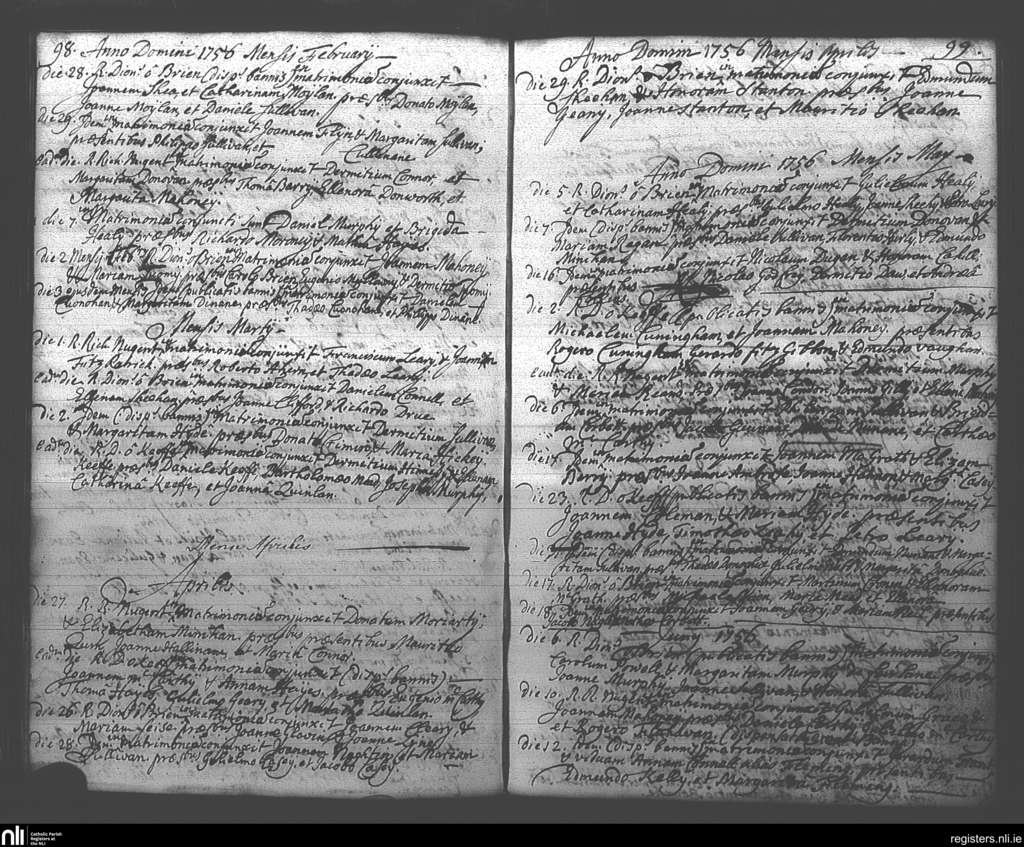 St. Mary's, Cork city; County of Cork; Diocese of Cork and Ross. Marriages, Nov. 1749 to Dec. 1749