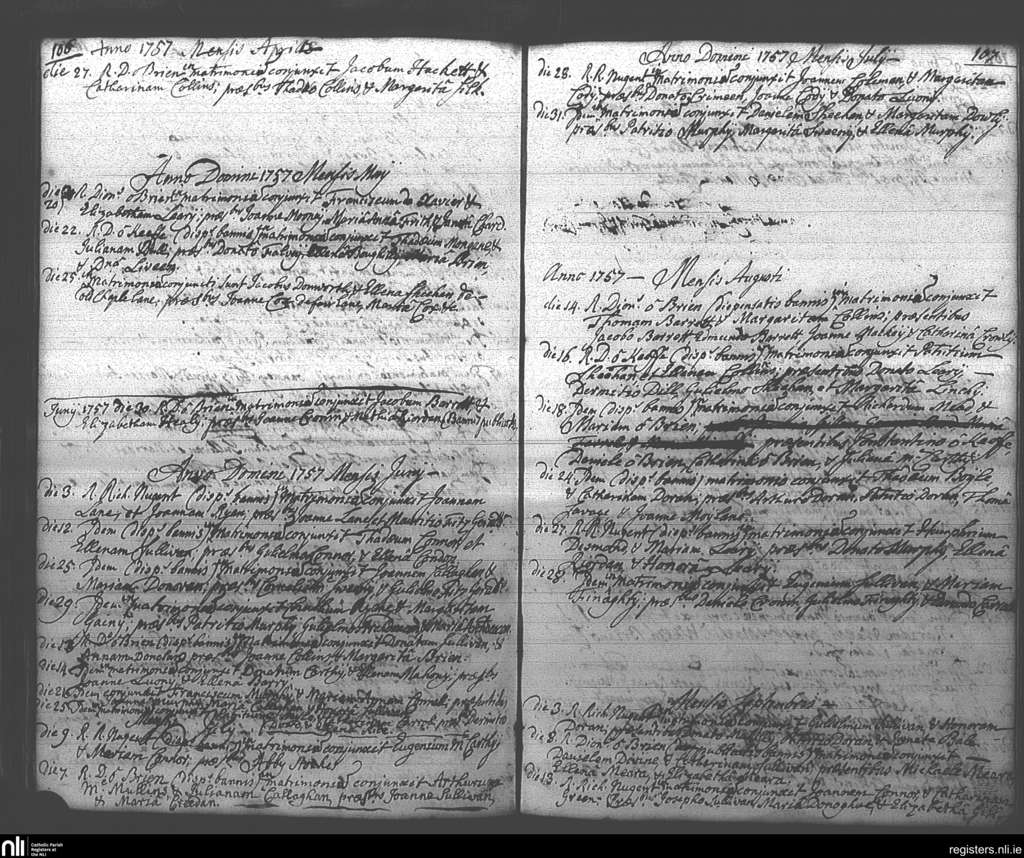 St. Mary's, Cork city; County of Cork; Diocese of Cork and Ross. Marriages, May 1749 to June 1749