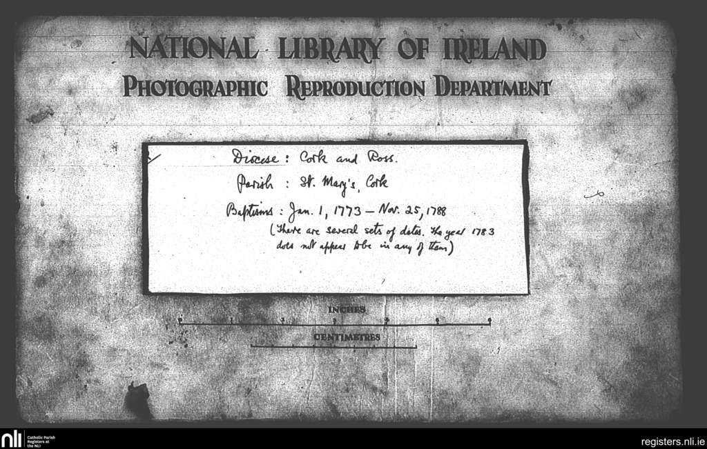 St. Mary's, Cork city; County of Cork; Diocese of Cork and Ross. Baptisms